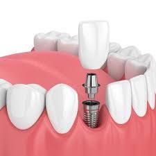 - The restoration is a crown, the part that looks like a tooth. It is usually made of porcelain fused to a metal alloy. The crown is screwed or cemented onto the abutment.